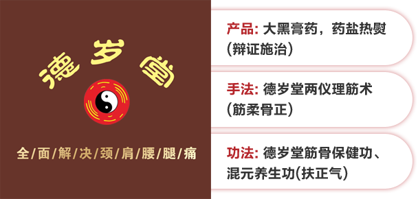 【德岁堂】武医疗法适用于骨质增生、颈椎病、腰椎间盘突出、强直性脊柱炎、腰肌劳损、肩周炎、滑膜炎、股骨头坏死、网球肘、足跟骨刺、老风湿、老寒腿、筋骨疼痛、跌打损伤、四肢麻木等各种骨病引起的疼痛人群。